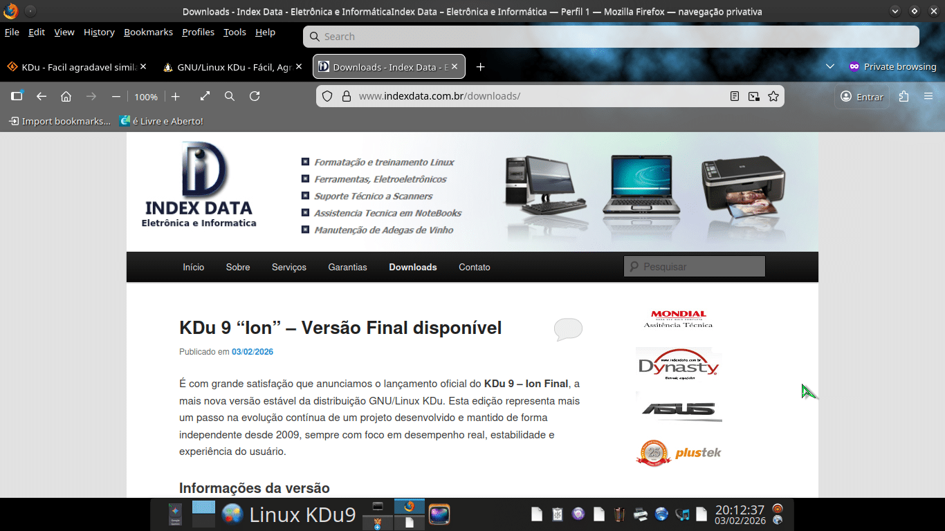 O Linux KDu 9 chega como resultado de anos de refinamento e uso prático. Desenvolvido com paixão e orgulho pessoal, o sistema é testado e utilizado diariamente em ambiente de produção real – atualmente em seis máquinas na empresa Index Data Eletrônica.