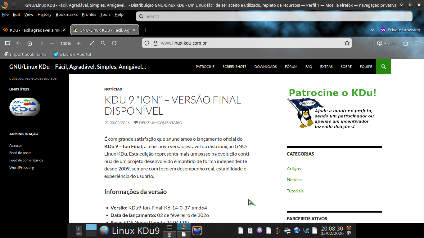 É com grande satisfação que anunciamos o lançamento oficial do KDu 9 – Ion Final, a mais nova versão estável da distribuição GNU/Linux KDu. Esta edição representa mais um passo na evolução contínua de um projeto desenvolvido e mantido de forma independente desde 2009, sempre com foco em desempenho real, estabilidade e experiência do usuário.