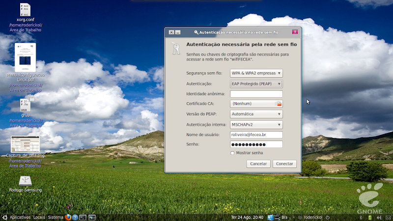 Mas enfim, tentei conectar e tirei uma imagem de como está minha configuração no Ubuntu.